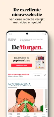 Tahvelarvutis avaneb De Morgeni eriline Digitale Editie igal hommikul uues ja rikkalikus vormis. See on hoolikalt kureeritud valik päeva kõige olulisemaid ja köitvamaid lugusid, mis on kokku pandud De Morgeni kogenud ajakirjanike ja peatoimetuse poolt. Naudi sügavuti minevaid artikleid, mida täiendavad suurepärased fotod, kaasahaaravad videod, harivad taskuhäälingusaated ja kunstilised illustratsioonid. Ja mis kõige parem – saad kogu selle sisu kaasa võtta ja lugeda igal pool, isegi siis, kui internetiühendust pole käepärast.