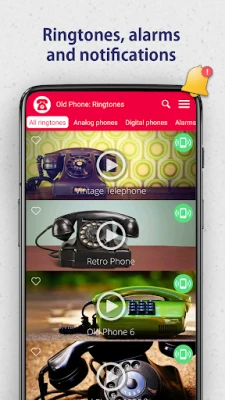 Kuid see rakendus pakub enamat kui lihtsalt helinaid. Avastage ka äratuskellade ja märguannete maailm, valides äratuseks vana aja äratuskella kordumatu klõpsatuse või lühikese meeldetuletusheli teavituste jaoks. Olgu teie lemmikuks vana valimiskettaga telefon või otsite seda haruldast tooni oma esimeselt mobiililt, siit leiate kindlasti midagi, mis südamesse pugeb. Need ajatud helid ei aegu kunagi, pakkudes teie digitaalsele elule klassikalist elegantsi ja tagades, et teie telefon kõlaks alati ainulaadselt.